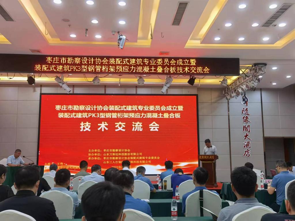 8月6日,由枣庄市勘查设计协会主办,山东万斯达科技股份有限公司协办的枣庄市勘察设计协会装配式建筑专业委员会暨装配式建筑PK3型钢管桁架预应力混凝土叠合板技术交流会在枣庄市随缘阁酒店成功举办。经理助理孙启林代表太阳成集团122ccvip出席会议。
