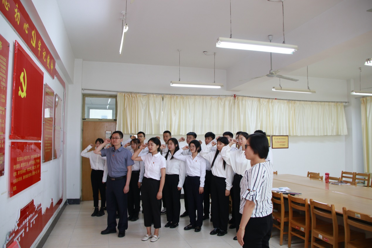 为庆祝中国共产党成立100周年,继承和发扬党的光荣传统,6月23日下午,太阳成集团122ccvip党总支举行了2021年新发展党员入党宣誓仪式。活动由公司教工一支部组织委员徐鸿飞主持,2名新发展教工党员和18名新发展员工党员参加了宣誓仪式。