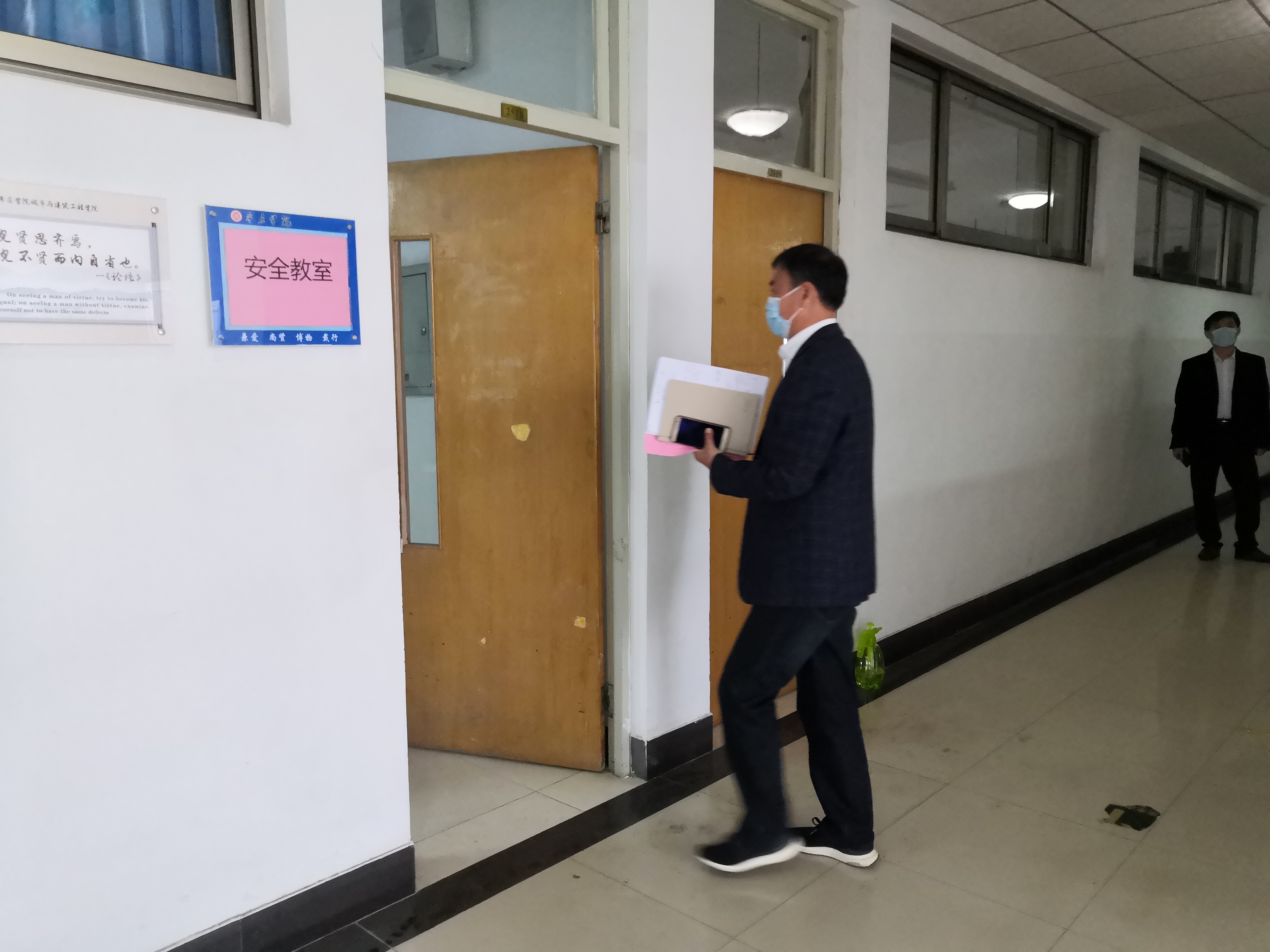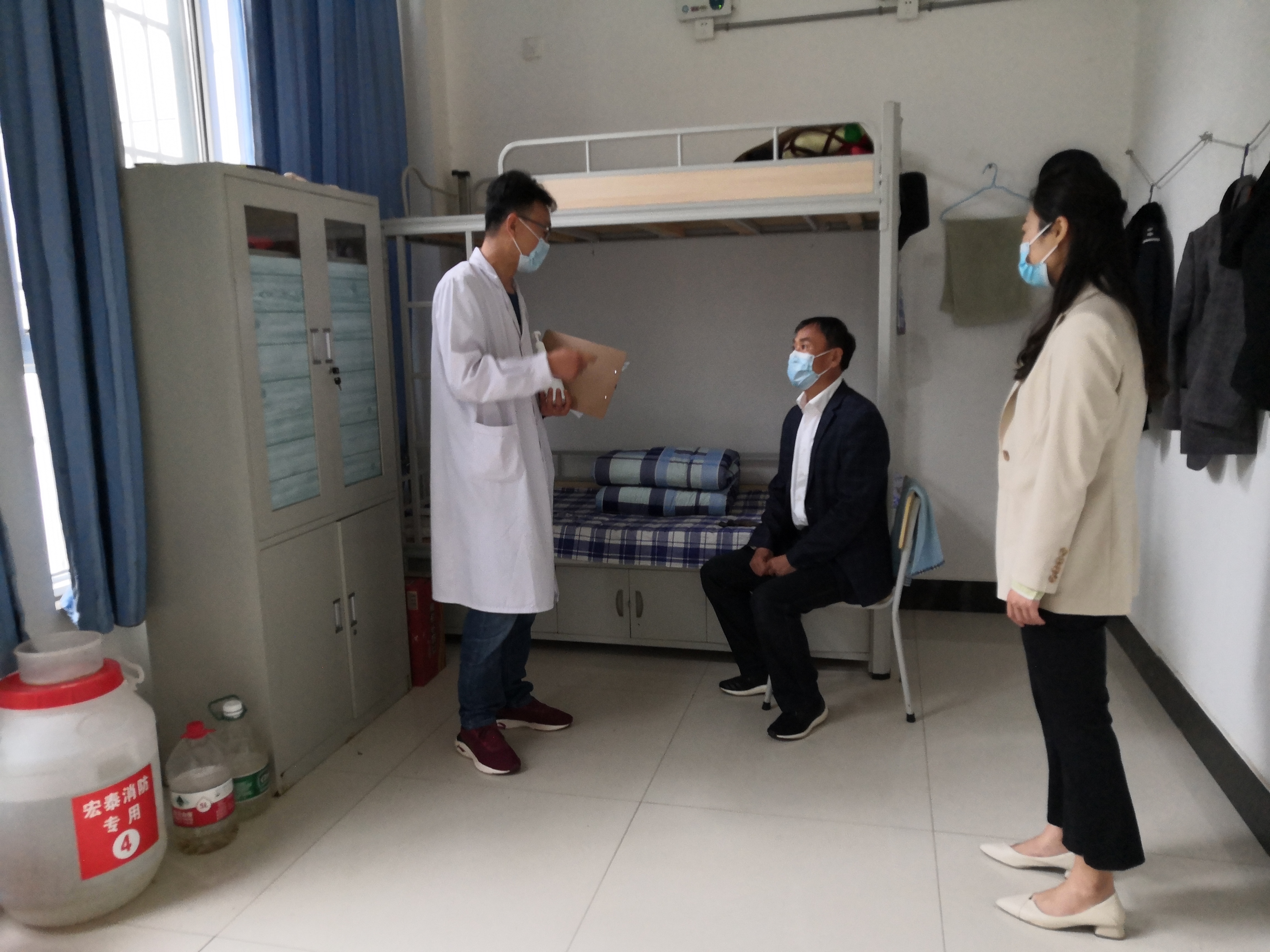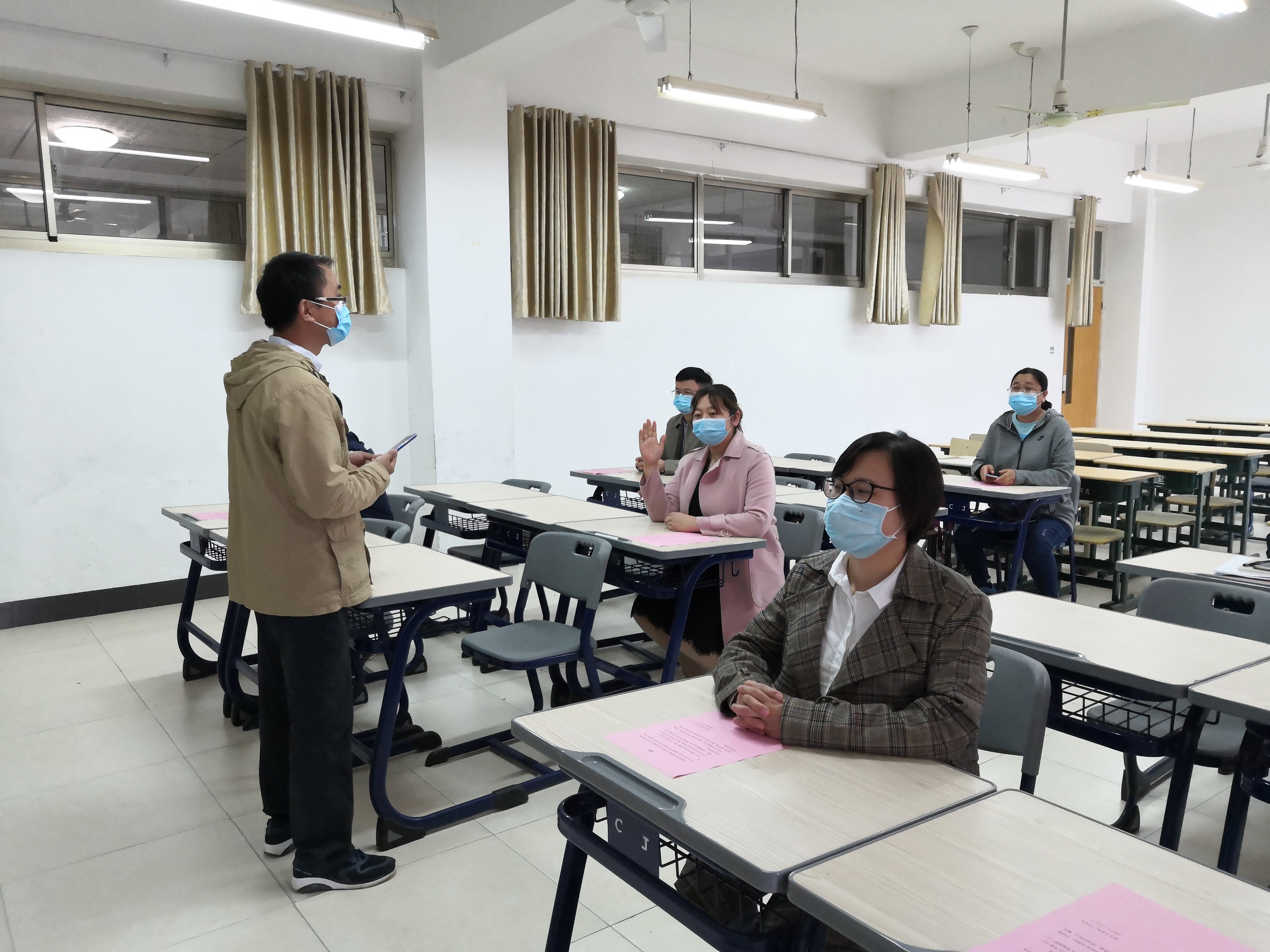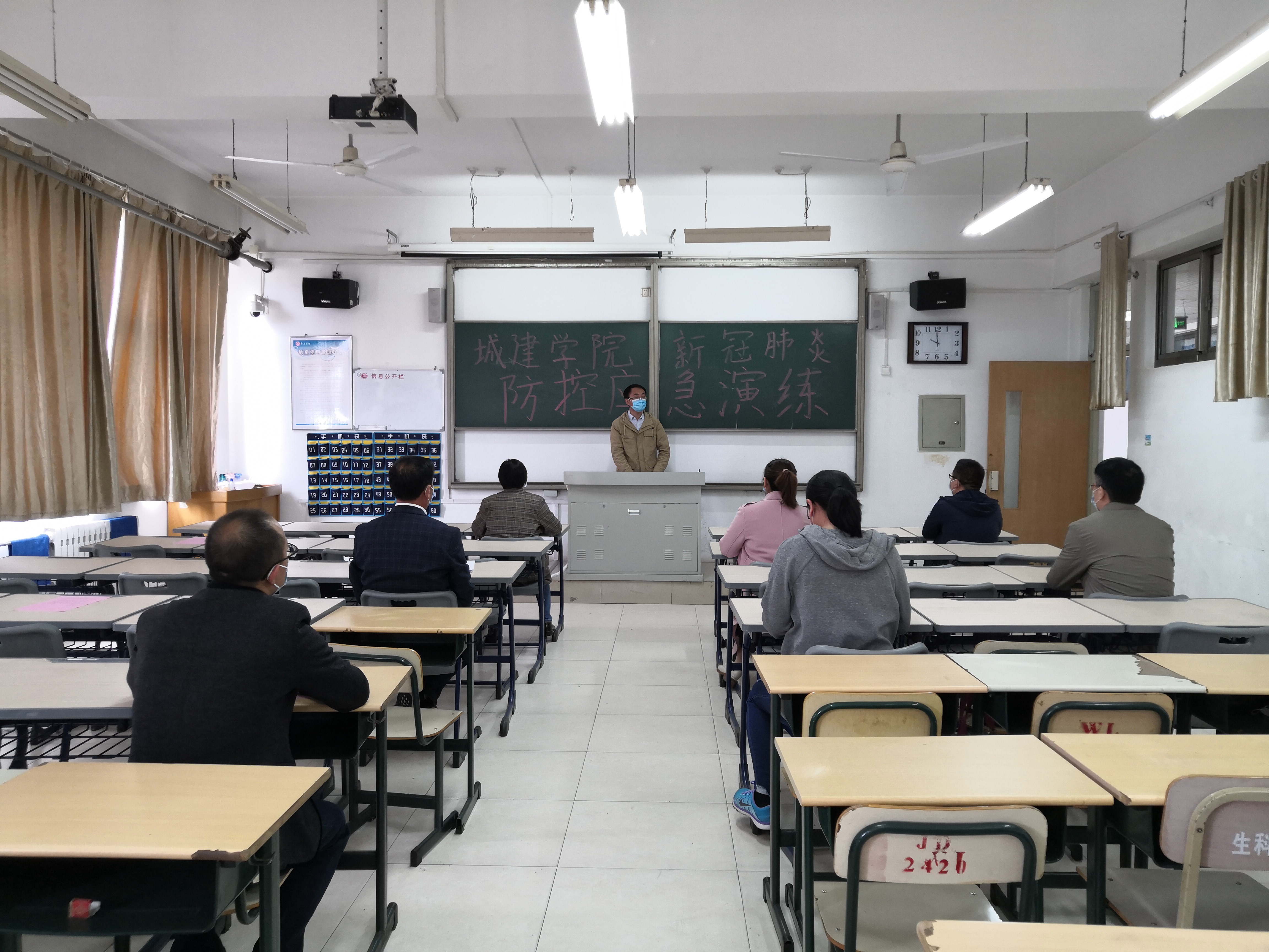 5月8日上午10点,演练正式开始。本次演练围绕教师上课期间员工发热及员工宿舍内发热两种场景两个场景展开,由公司新冠肺炎防控工作小组成员、部分教师按照应急演练方案分角色模拟演练。