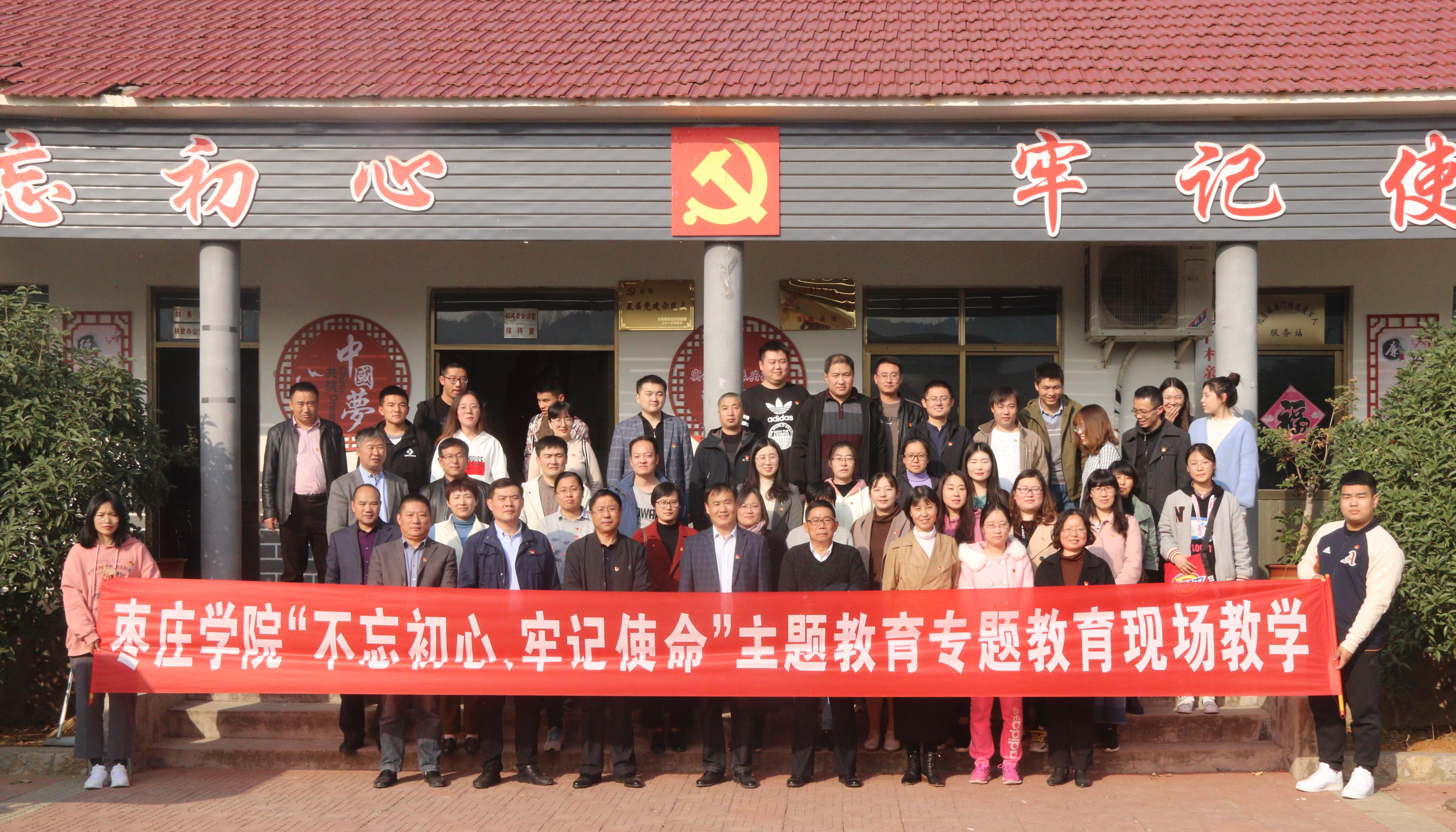 11月12日,太阳成集团122ccvip与旅游与资源环境公司组织教工党员和部分师生代表赴山亭区凫城镇王家湾---峄县抗日民主政府旧址开展“不忘初心、牢记使命”主题教育现场教学活动。