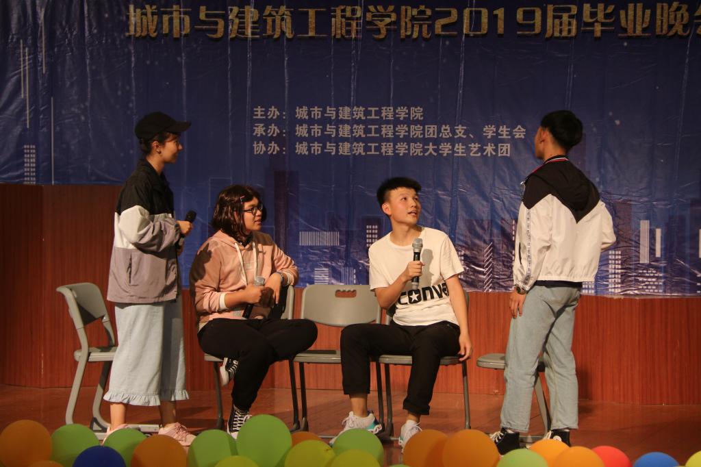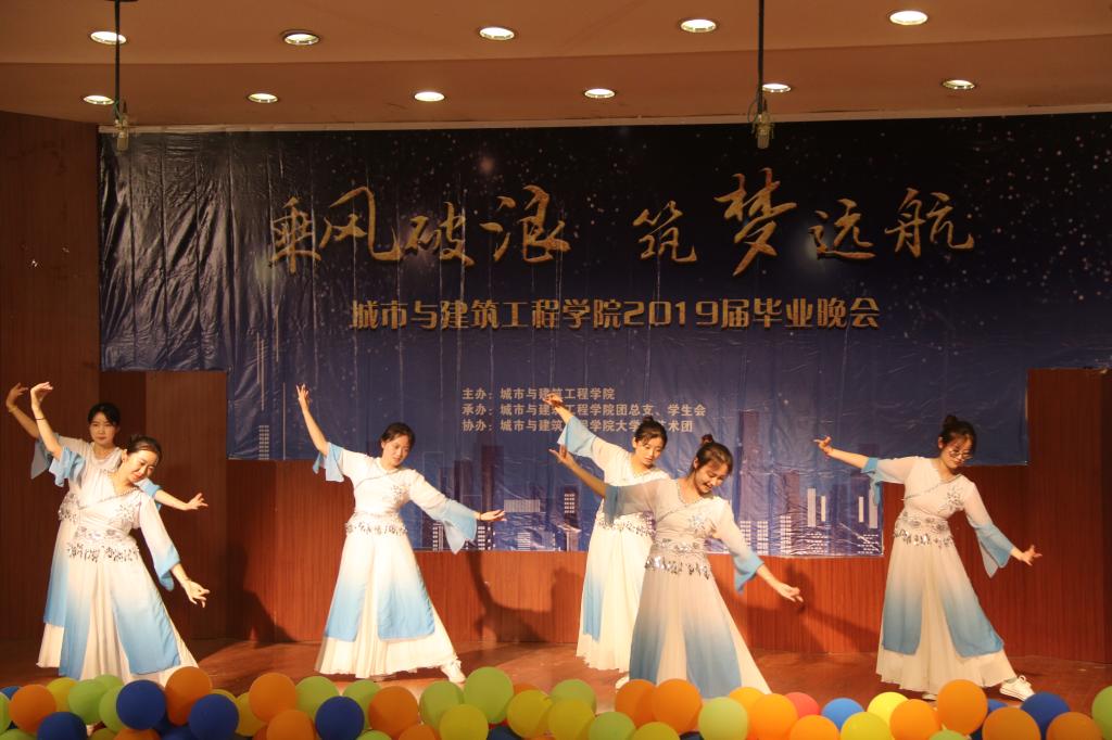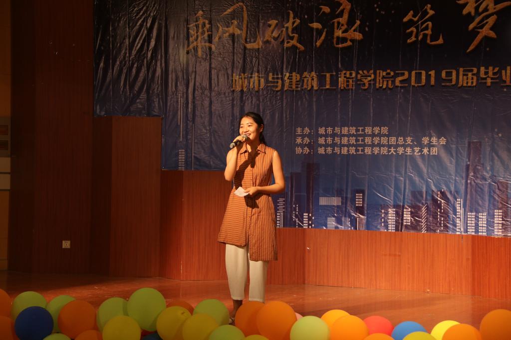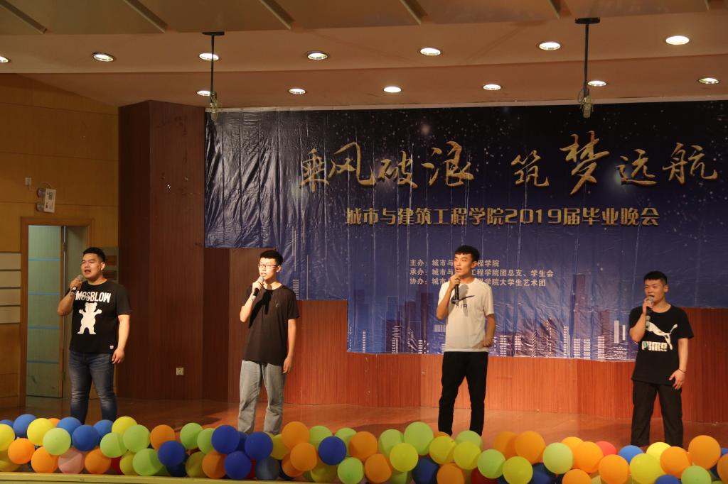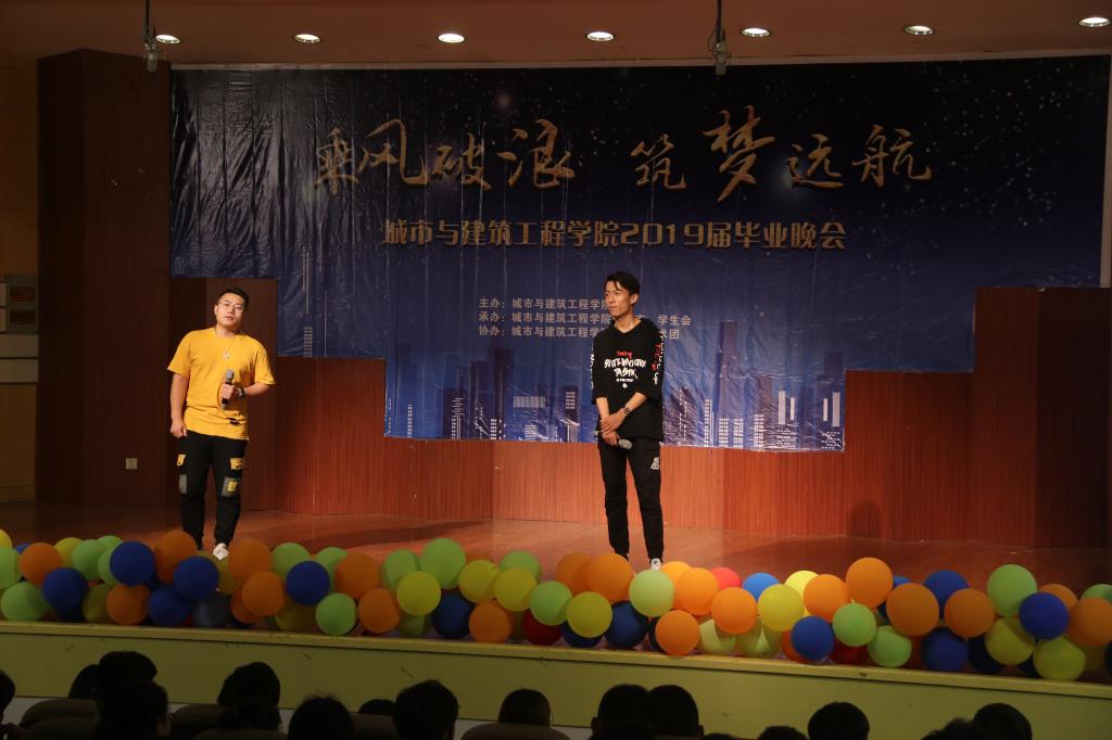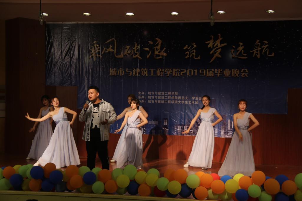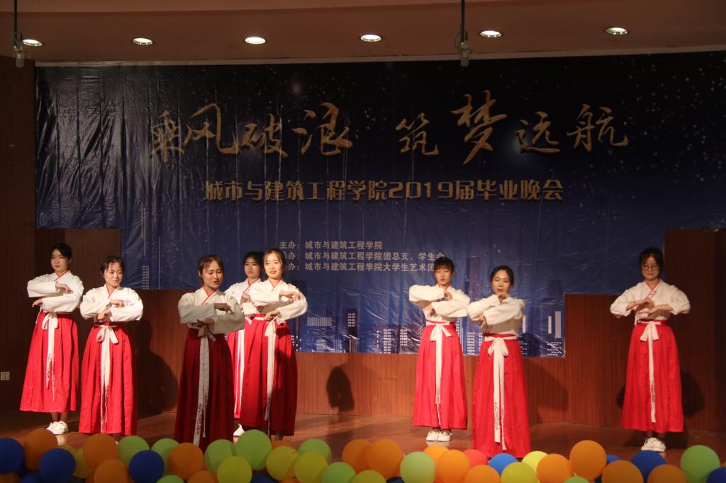 晚会以“乘风破浪,筑梦远航”为主题,活力四射的舞蹈《LATATA》拉开晚会的帷幕,城建公司青年教师袁丹青用歌曲《最初的梦想》为毕业生送上祝福,随即掀起了晚会的高潮。2017级表演的小品《海阔天空》,在欢乐的气氛中,将老员工特有的朝气与活力表达的淋漓尽致。手语舞蹈《生僻字》《繁花》、歌曲《鼓楼》、歌曲串烧《那些花儿》《童年》《红日》、爵士舞《MONSRERS》等一次又一次掀起了晚会高潮。歌伴舞《凤凰花开的路口》及诗朗诵《走向远方》表达了对师哥师姐深深的祝福。2015级给排水带来的情景剧《在见青春》展示了毕业生几年来生活学习中的点点滴滴,抒发了枣院学子对母校的留恋与热爱。晚会通过微信上墙等形式与观众进行互动,整台晚会师生同台演出,体现了深深地师生情和同学情。最后,晚会在《毕业歌》的歌声中落下了帷幕。