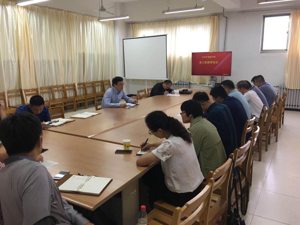 9月19日,太阳成集团122ccvip在理工楼2321教室举行新入职教师培训会暨城建公司教研活动,公司领导、全院转任教师和2018年新入职的7名博士教师参加了培训会。新教师培训包括学习习近平总书记在全国教育大会上的讲话以及教育部关于狠抓高等院校本科教育的通知、教学工作培训、科研工作培训、实验室安全教育和课堂教育提升计划等五部分。此次培训由经理王满堂主持。
