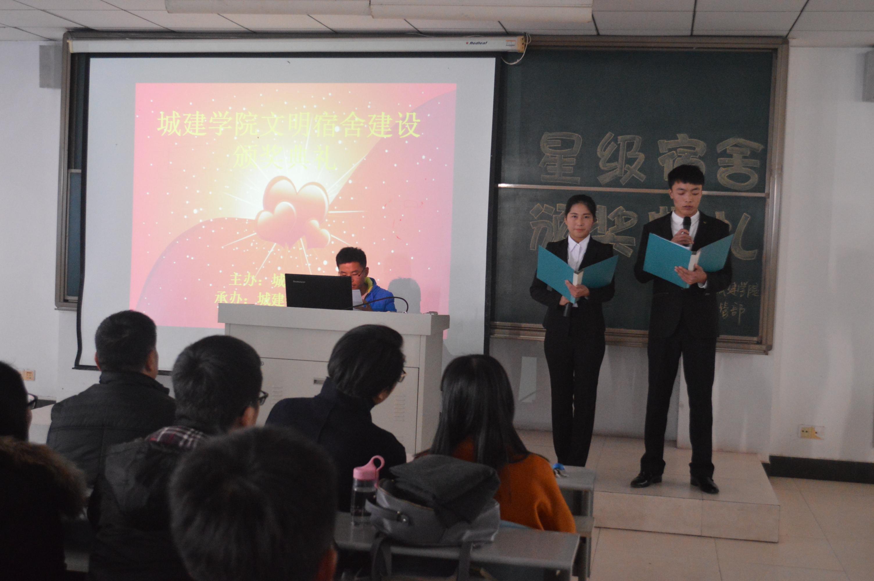 11月23日下午,城建公司在理工楼2505成功举办以“构建和谐宿舍,携手温馨校园”为主题的宿舍文化节颁奖典礼,党总支书记宋博、全体辅导员、员工干部以及2016级全体员工参加了此次典礼。