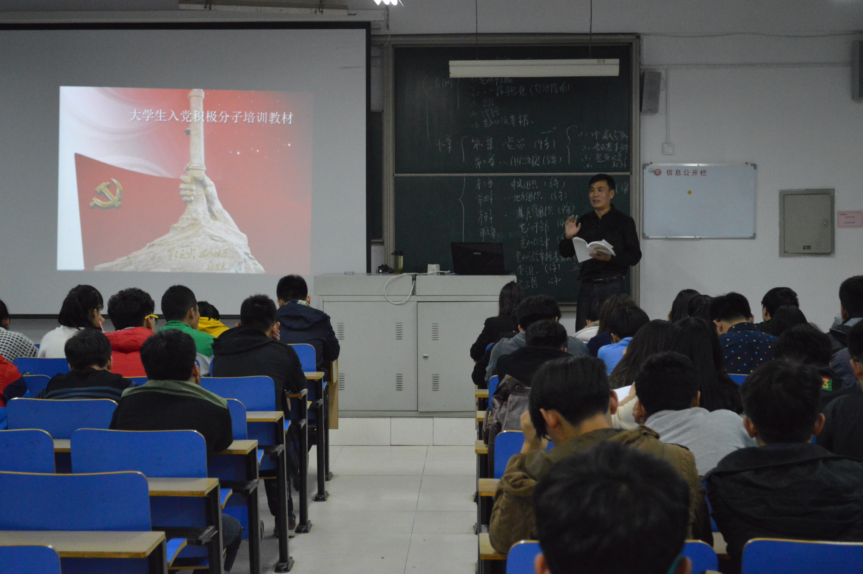 2014年10月22日晚,城建公司院级党课培训在理工楼2518举行,党总支书记李振清主讲,全体入党积极分子及部分员工党员参加。
