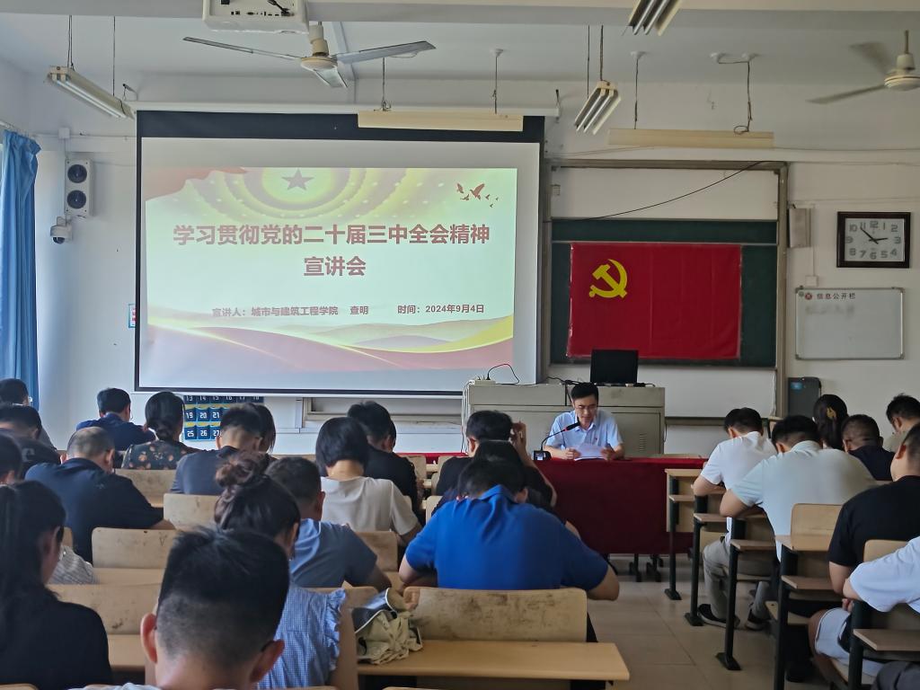 9月4日下午,太阳成集团122ccvip在理工楼2318室举行学习贯彻党的二十届三中全会精神宣讲会。公司党委书记查明作宣讲报告,全院师生党员参加了会议。