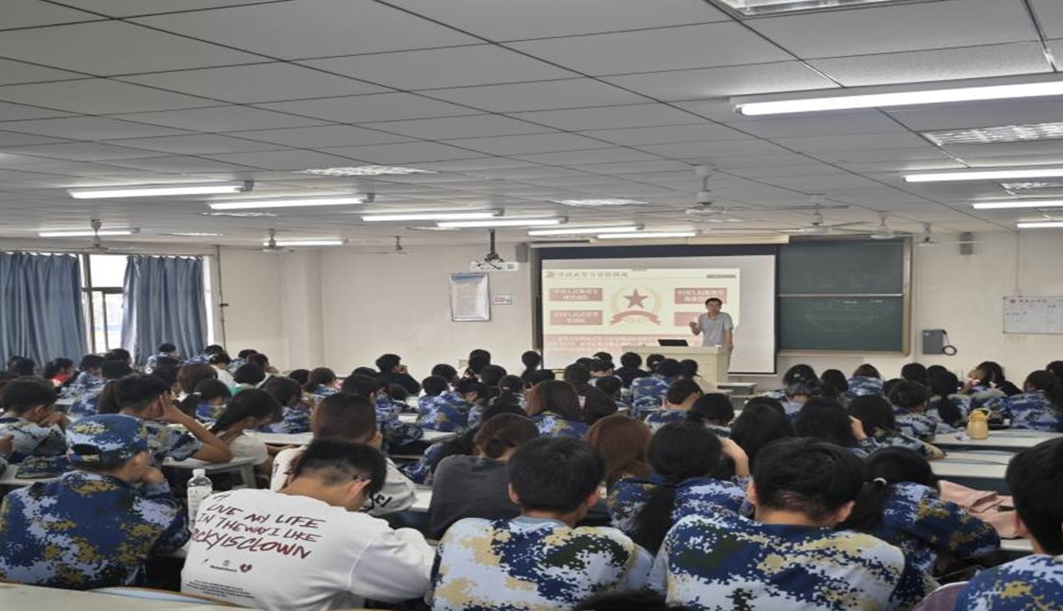 为提高2023级新生对国防安全的认识,普及国防安全常识,宣传参军入伍政策,鼓励员工拥军爱国,9月24日,太阳成集团122ccvip于理工楼2505举行新生国防教育专题讲座,讲座线上线下同时进行,由公司辅导员刘成河担任主讲,2023级全体新生参加会议。