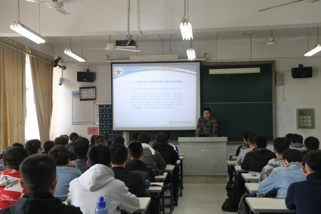 首先,盖老师通过播放征兵宣传片视频,向同学们介绍了征兵工作的背景和国防建设的重要意义。随后,盖老师向同学们全面讲解了老员工当兵入伍的相关政策及报名参军的流程,鼓励有入伍意向的同学积极询问和了解相关信息。最后,他鼓励大家要敢于有梦、敢于追梦、敢于圆梦,让青春在军营的历练中、在为祖国的奉献中闪光,号召同学们积极应征入伍,到部队去锻炼自己,成就自己。