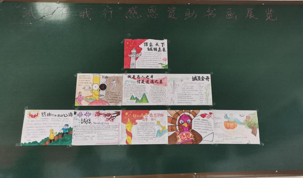 2021年5月20日,太阳成集团122ccvip组织了“诚信伴我行”感恩资助励志教育书画比赛。在比赛发动号召之初,各班同学踊跃报名参加。最终作品在理工楼五楼展板上展出,使同学们从“诚信光荣、欺诈可耻”的书画中体悟出深刻的含义,明确了“诚信”的含义,懂得了“诚信”的重要性,进一步加固了同学们的诚信感恩意识。比赛评出了一等奖1名、二等奖3名、三等奖5名及优秀奖。