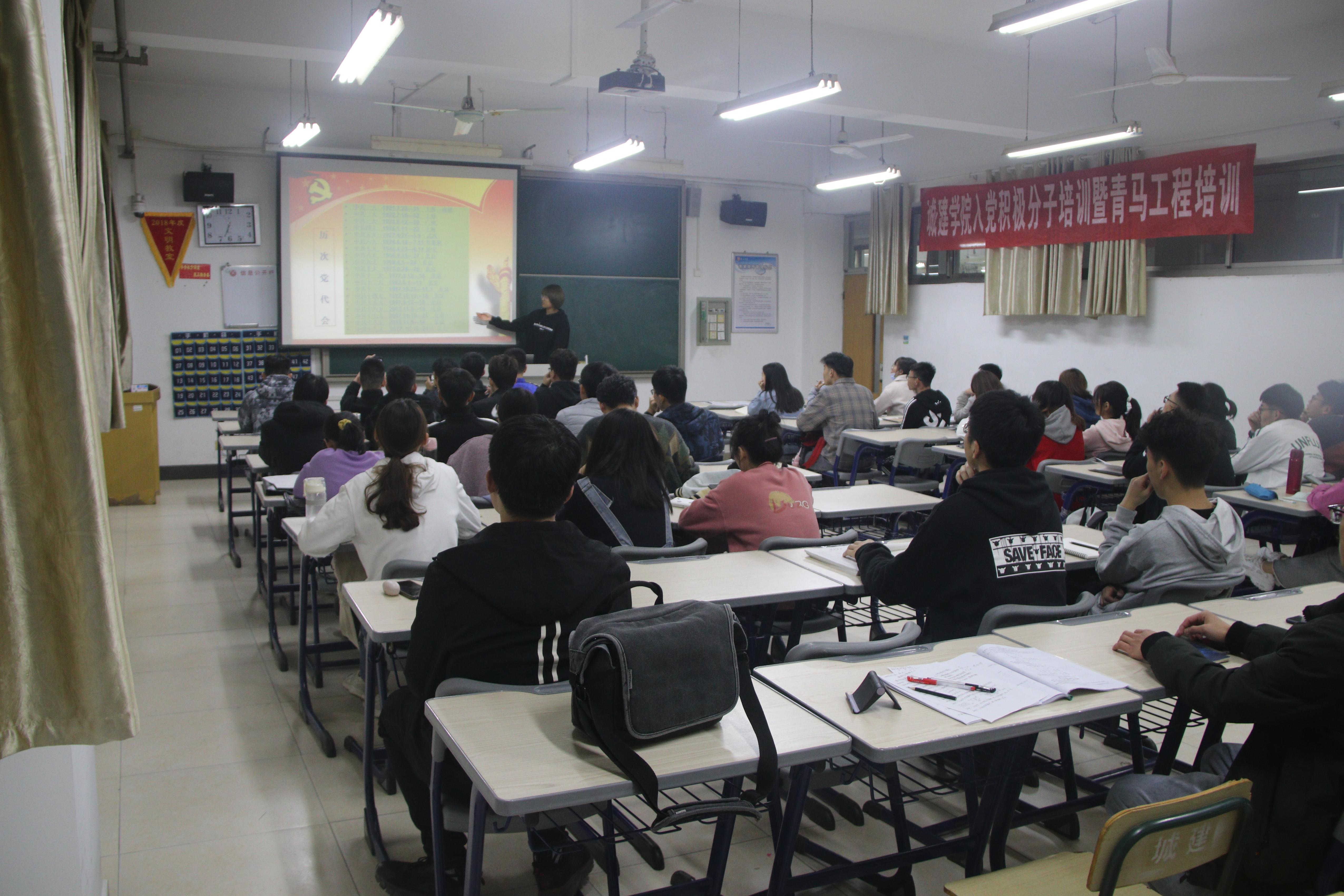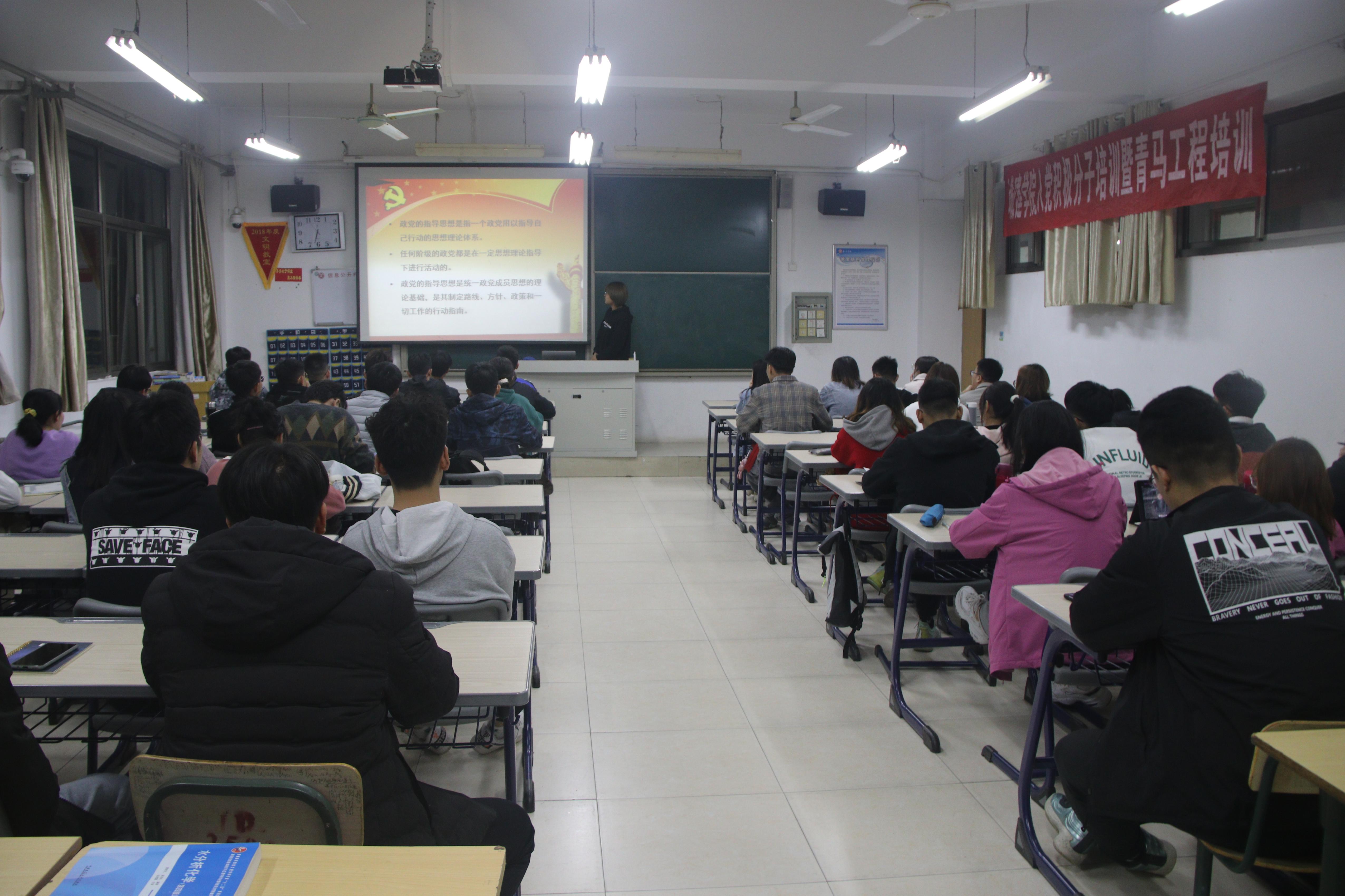 太阳成集团122ccvip党总支为进一步提高入党积极分子爱国守法、明礼诚信、团结友善、勤俭自强、敬业奉献等思想觉悟,太阳成集团122ccvip特于11月2日下午6点40分在2516教室开展2020年入党积极分子培训暨青马工程培训第二讲。