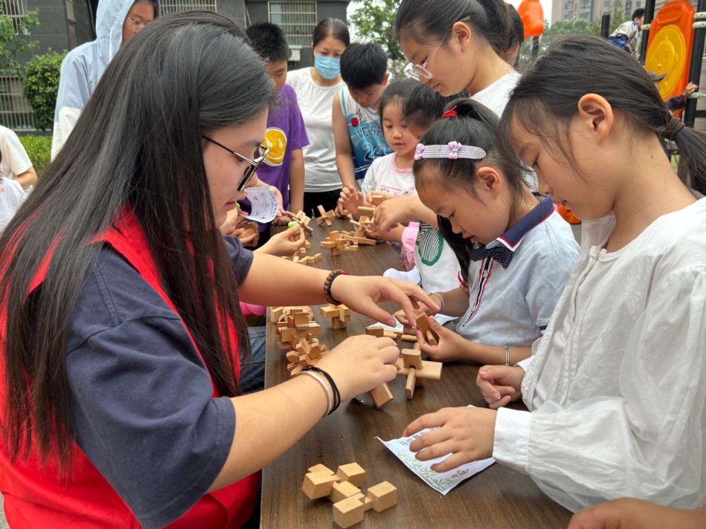 活动现场精心设置了五大特色区域——拍照打卡区、粽子套圈区、鲁班锁解密、公益义卖区、好运投壶区,宛如五颗璀璨的明珠,串联起民俗传承与亲子互动的精彩篇章。活动以集章打卡形式串联各环节,参与者凭印章兑换各类礼品。孩子们专注游戏,家长加油指导,公司青年志愿者耐心协助,既在互动中增进感情,又活跃了现场气氛,充满欢声笑语。