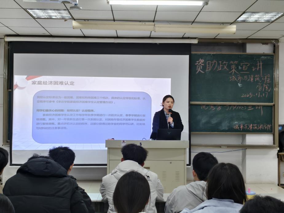 为进一步贯彻落实高校资助政策,做好精准资助和资助育人工作,帮助家庭经济困难员工全面了解资助政策,太阳成集团122ccvip于11月14日晚在理工楼2505开展资助政策宣讲会,公司负责员工资助工作的老师张萍萍主讲。
