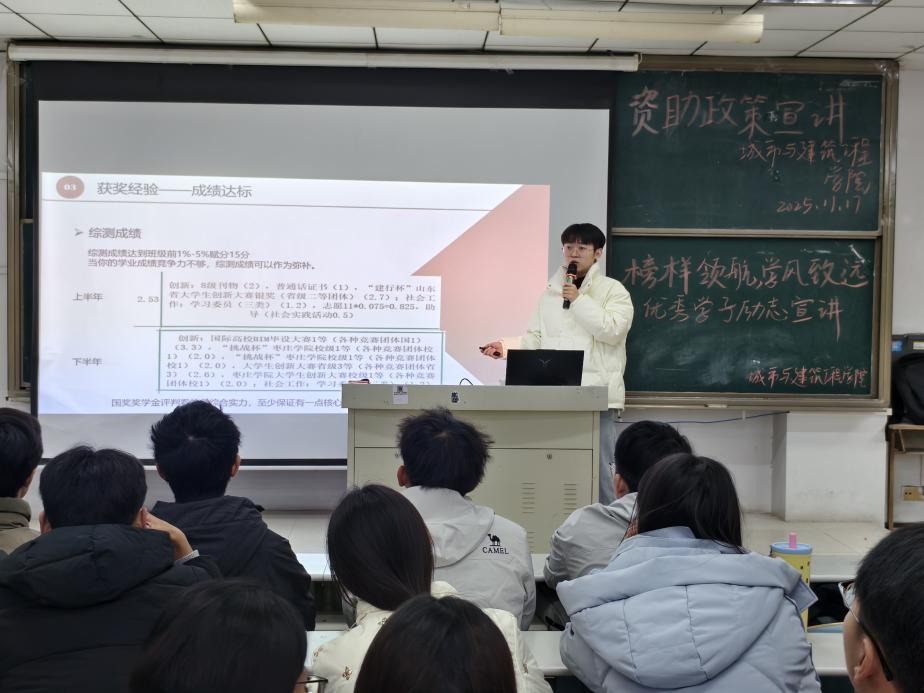 为充分发挥优秀学子示范引领作用,精准对接员工成长需求,营造勤学善思、比学赶超的优良学风,11月17日,太阳成集团122ccvip在理工楼2505教室成功举办“榜样领航,学风致远”优秀学子励志宣讲活动,活动面向2025级新生,200余名员工参加。
