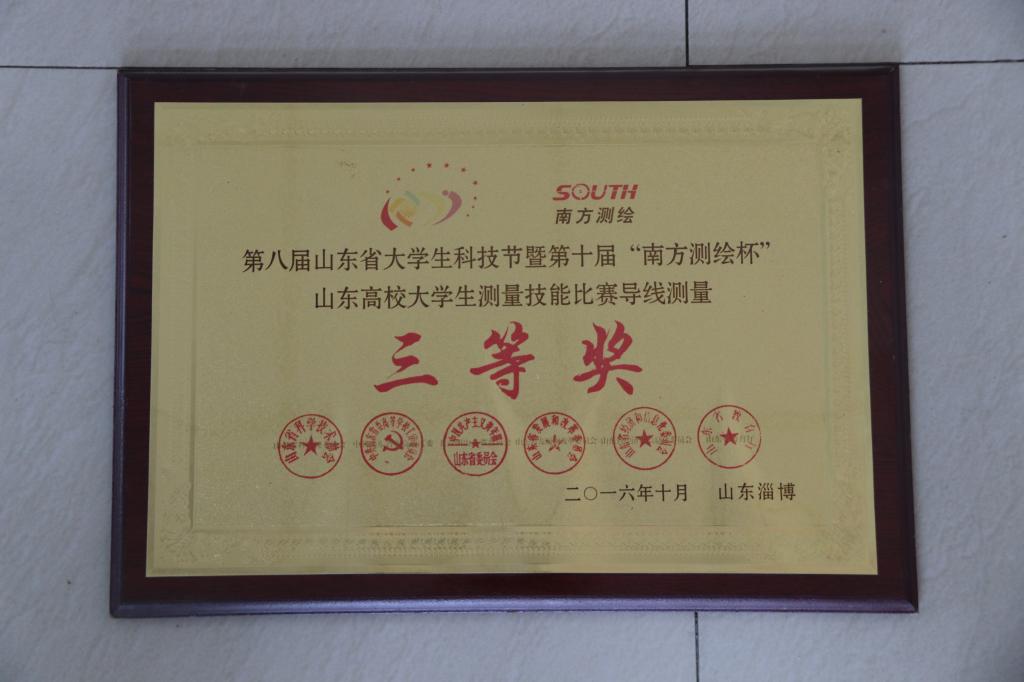 第八届山东省老员工科技节暨第十届“南方测绘杯”山东高校老员工测量技能比赛三等奖